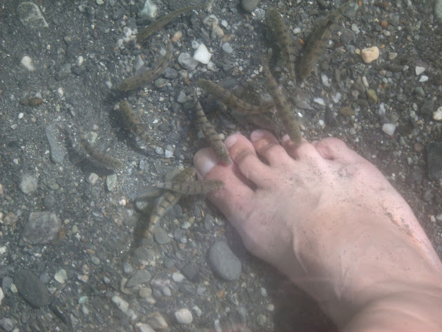 一群小魚會群聚腳邊啄腳皮,