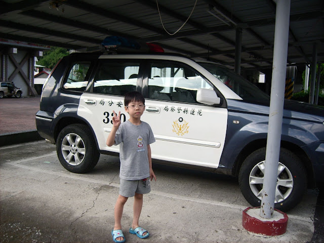 Gian 喜歡和警車合照
